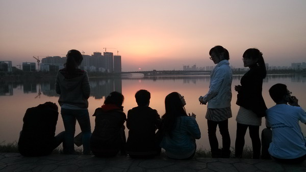 Mei Xihu is located in International City Development focus area of Changsha. With wide lake, green trees and fresh air, it is the ideal place for urban citizen’s recreation. We ridded along the lake area, stopping and going, laughing and playing. Sunset was infinitely quiet and good. We returned to school smoothly at five o’clock.