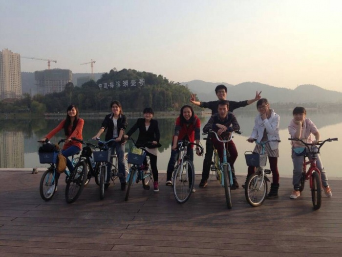 On November 16, 2013, two o’clock in the afternoon, all the students of CEFMS went to Mei Xihu for riding under the organization of the party branch secretary, Haifeng Xu. The sun was shining. We also learned to enjoy life and the good times.