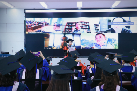 At 15:00 in the afternoon, the 2021 graduates, three representatives of the 2020 graduates, all faculty and staff participated in the degree award ceremony of the CEFMS. The host Professor Yaqin Su, secretary Professor Hu Zongyi, and all the full-time professors take turns to give speech to the graduates. The visiting professors who were unable to attend the graduation ceremony due to the epidemic also expressed their pride in the achievements of the graduates. They encouraged the students to learn to care for themselves and calmly deal with various challenges in life and work. Later, the representatives of the doctoral graduates and the master’s graduates spoke successively, expressing their gratitude to the teachers of CEFMS, classmates and friends. During their studies at CEFMS, the graduates have improved their academic aptitude and cognitive ability, cultivated the ability of solving difficult problems, gained growth and friendship. Finally, Professor Haizheng Li made a concluding remark, congratulating the graduates on successfully completing their studies, and wishing everyone to find simple happiness and embrace the world in a world full of uncertainties. The degree-granting ceremony officially started at 16:00 pm. Professor Haizheng Li issued graduation certificates and took photos with the graduates.